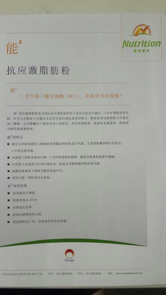 乳能佳是新加坡奥格营养有限公司根据知名的脂肪营养专家孙安权先生多年的研究成果,利用复合型乳化剂对棕榈油进行复合乳化,并结合断奶仔猪的消化系统特点进行优化设计而…